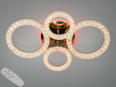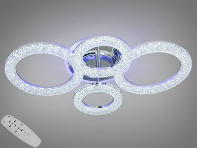 Стельова LED люстра 3 кільця хром 50 Вт пульт 9 м²