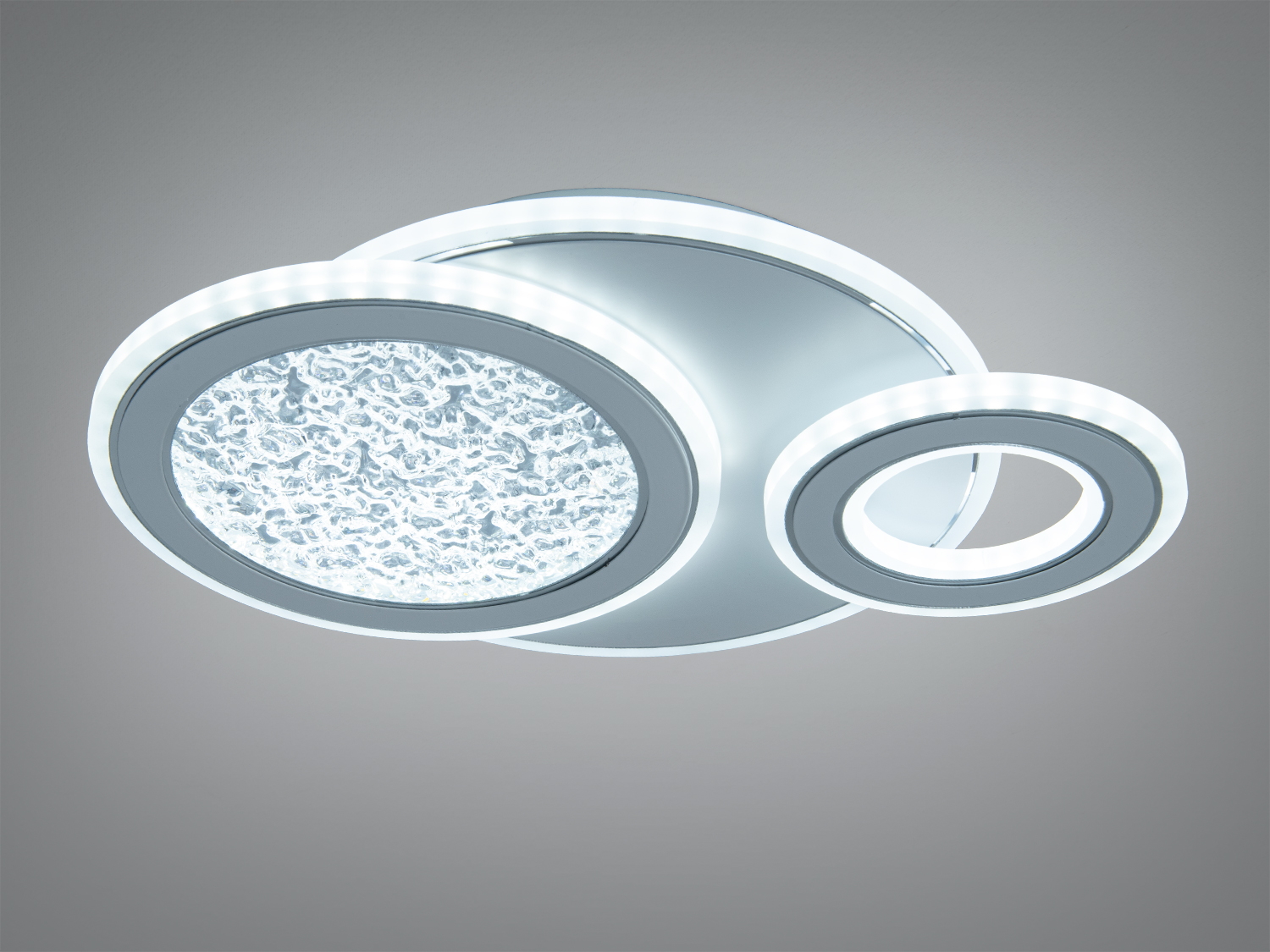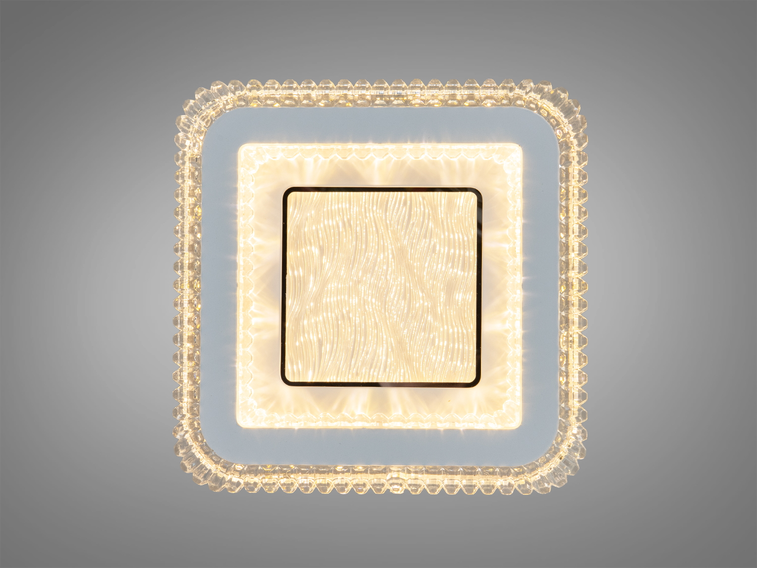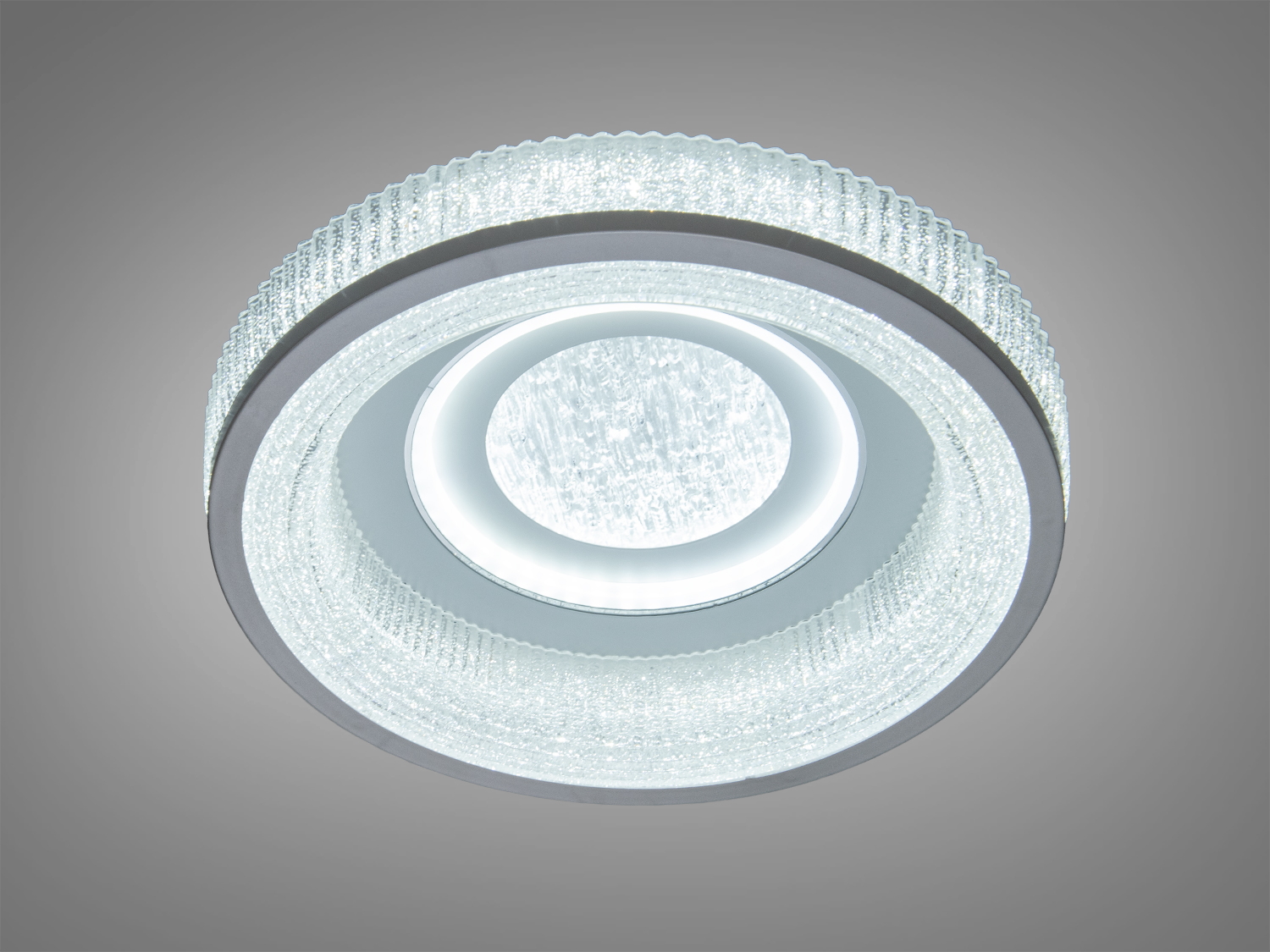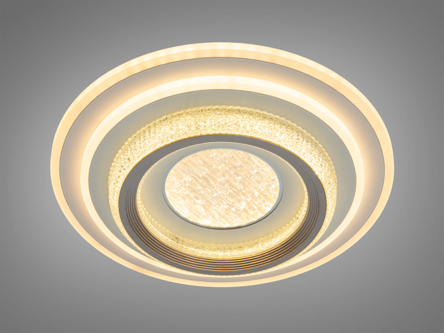 Круглий світильник з прозорого скла, що випромінює холодне біле світло, з квітковим візерунком у центрі, підходить для сучасних інтер′єрів.Світильник з теплим жовтим світлом, має круглу форму та декоративний квітковий візерунок, ідеальний для затишних приміщень.Вбудований світильник з прозорого матеріалу, що випромінює нейтральне світло, з квітковим орнаментом, підходить для стельового монтажу.Світлодіодний стельовий світильник сірий 34Вт CCT