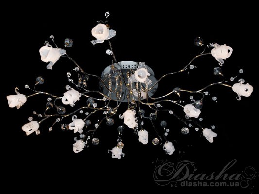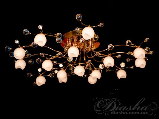 - Матеріали: металевий каркас, розсіювач із акрилу; можливі декоративні кришталеві елементи або гранована фактура, що підсилює блиск.