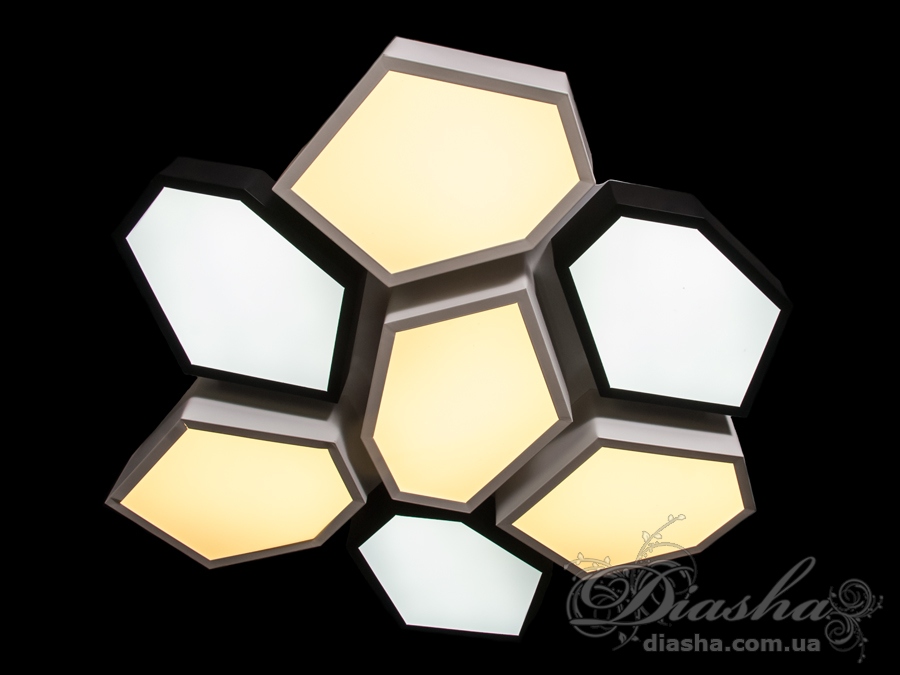 Кристалічні грані діють як природні розсіювачі, завдяки чому світло виглядає більш м’яким і теплим для сприйняття. Три кільця працюють як окремі світлові модулі, тому потік розподіляється по периметру і центру приміщення. Це може бути корисним там, де важливо підкреслити архітектурні деталі або зробити світло комфортним для щоденного використання — у вітальні, спальні чи їдальні.