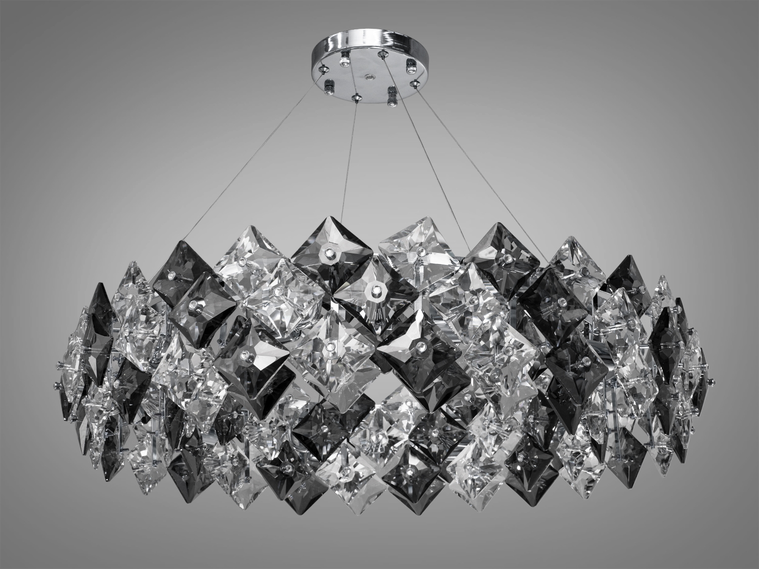 Люстри в зал часто обираються за їх здатність створювати центральний акцент у великому просторі, і ця модель ідеально підходить для цієї ролі. Вона здатна стати справжньою зіркою в інтер'єрі, надаючи йому відчуття грандіозності та розкоші. Її чисті та чіткі лінії кришталів відображають світло в різних напрямках, створюючи ефект, схожий на сяйво діамантів.