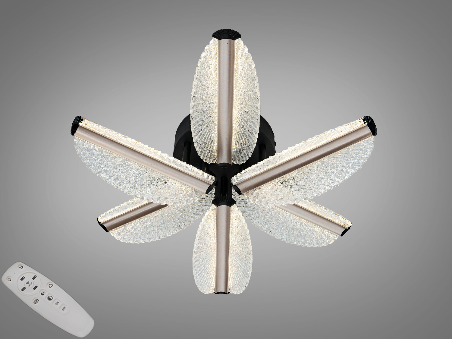 Світлодіодна стельова лампа з пультом, має чотири шестикутні форми, підходить для сучасного інтер′єру.Стельова лампа з чотирма шестикутниками, випромінює тепле світло, ідеальна для вітальні.Лампа з чотирма шестикутними елементами, виконана з прозорого матеріалу, підходить для офісного простору.Люстра стельова LED чорна 54 Вт з пультомЛюстра стельова LED чорна 54 Вт з пультом