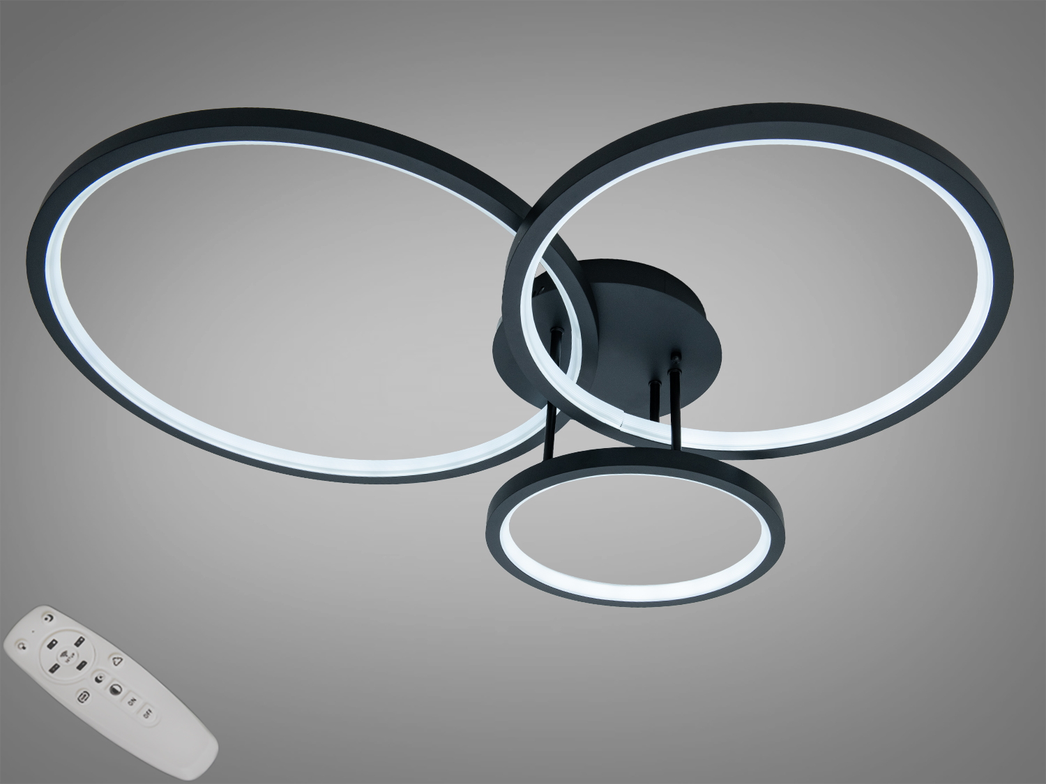 Світлодіодна стельова люстра Diasha з 3 кільцями у кольорі золото пропонує поєднання акуратного дизайну та зручного керування. Потужність 85 Вт достатня для освітлення приміщень близько 15 м², а пульт допомагає регулювати яскравість під завдання — від робочого режиму до затишного вечірнього.