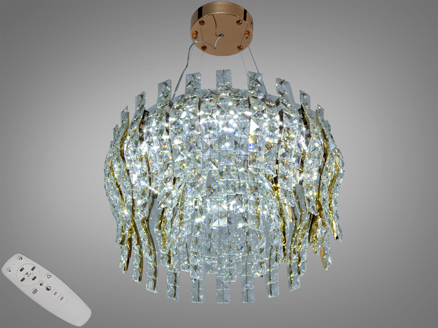 Підвісна люстра Diasha з керамічними елементами, 12xE14, Ø105 см, золото — акцент для просторих кімнат