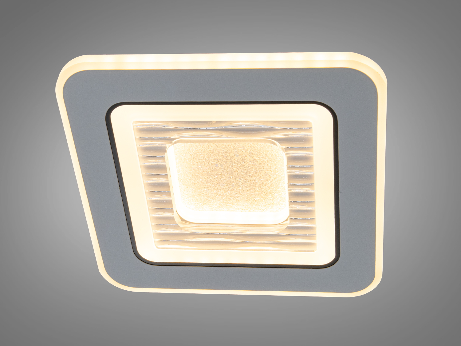 Світлодіодний стельовий світильник у білому кольорі з квадратною формою та прозорими декоративними вставками створює м′яке, рівномірне освітлення і візуальний кришталевий ефект. Потужність 40 Вт зазвичай достатня для кімнат площею до 7 м², тож модель часто обирають для коридорів, невеликих спалень, кухонь, передпокоїв чи робочих зон. Накладний монтаж економить простір та підкреслює сучасний інтер′єр, а керування здійснюється звичайним настінним вимикачем.