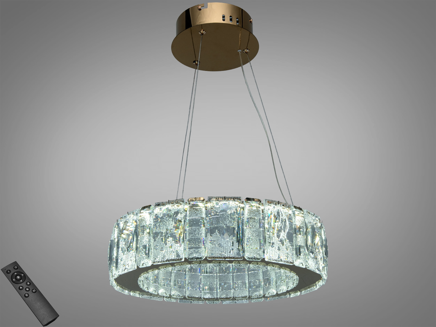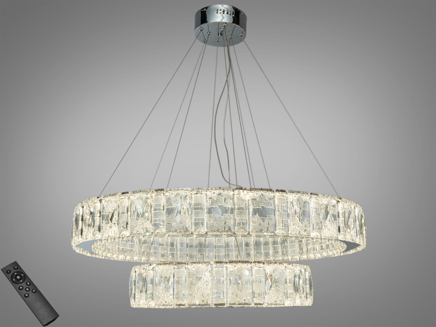 Світлодіодна кришталева люстра з пультом — 55 Вт, хром