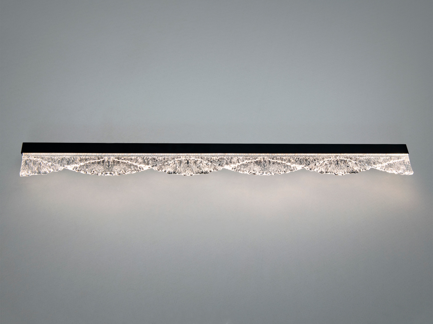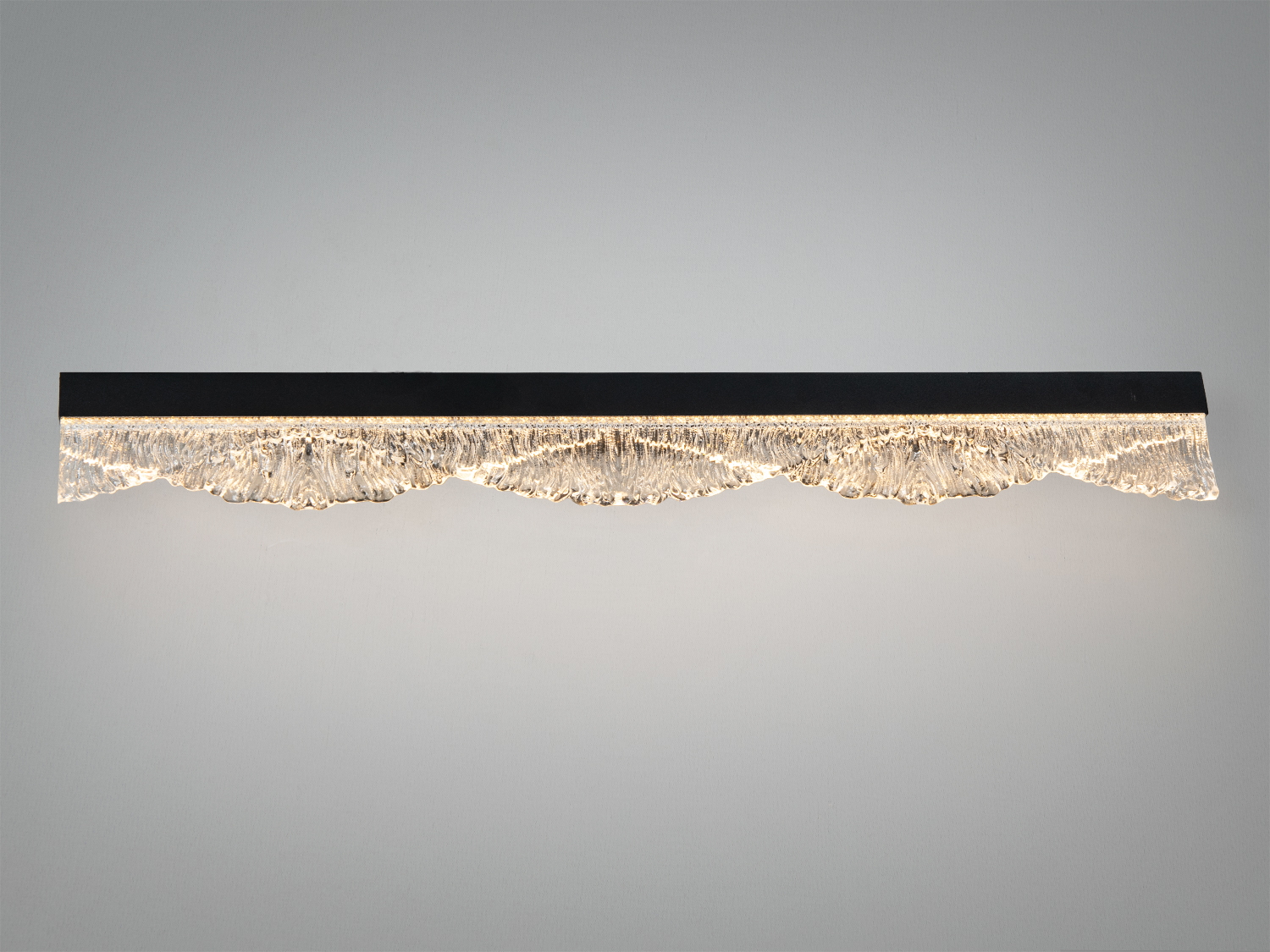 Настінний LED бра-планка, 11 Вт, чорна — лінійний світильник для настінного монтажу з прозорим рельєфним склом «хвилі» та чорним металевим корпусом. Поєднання текстурованого скла і стриманої геометрії створює м’яку гру світла на стіні та предметах інтер’єру. Такий формат зазвичай обирають для зонального й декоративного підсвічування у сучасних просторах, де важливі чисті лінії та акуратні деталі.