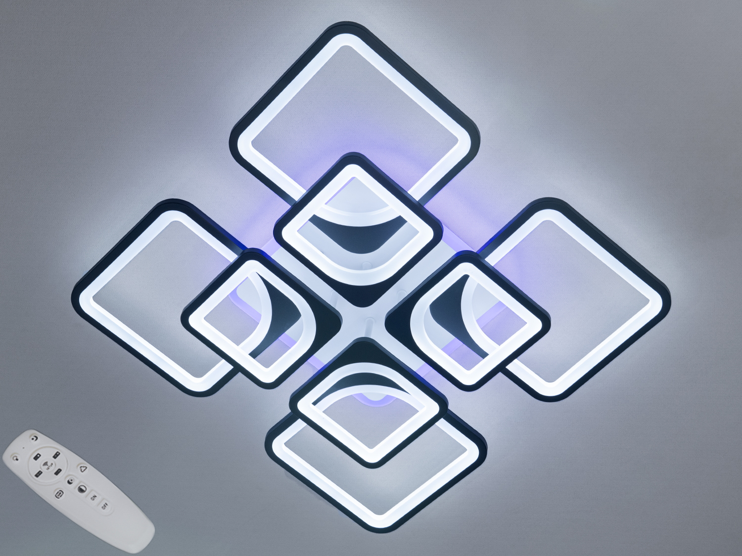 Світлодіодна люстра квадрати з пультом, дімером, підсвічуванням, 75W