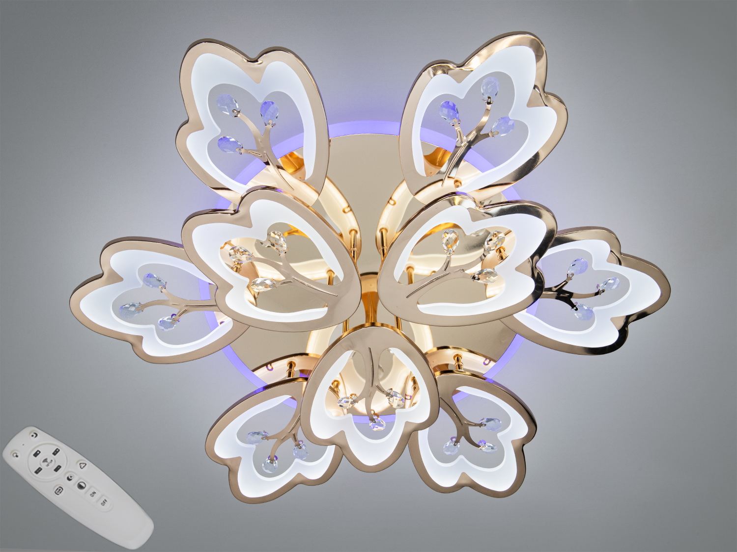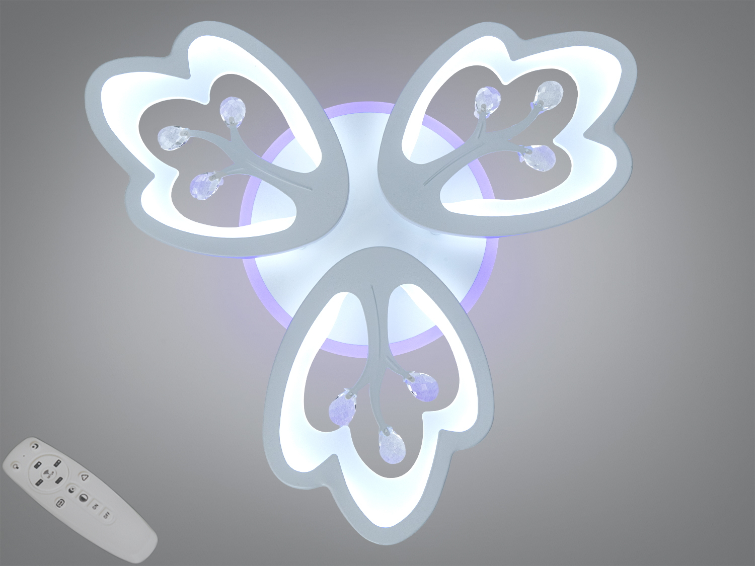 Люстра оснащена блоком живлення світлодіодних ламп, пультовим керуванням, порежимним включенням.
