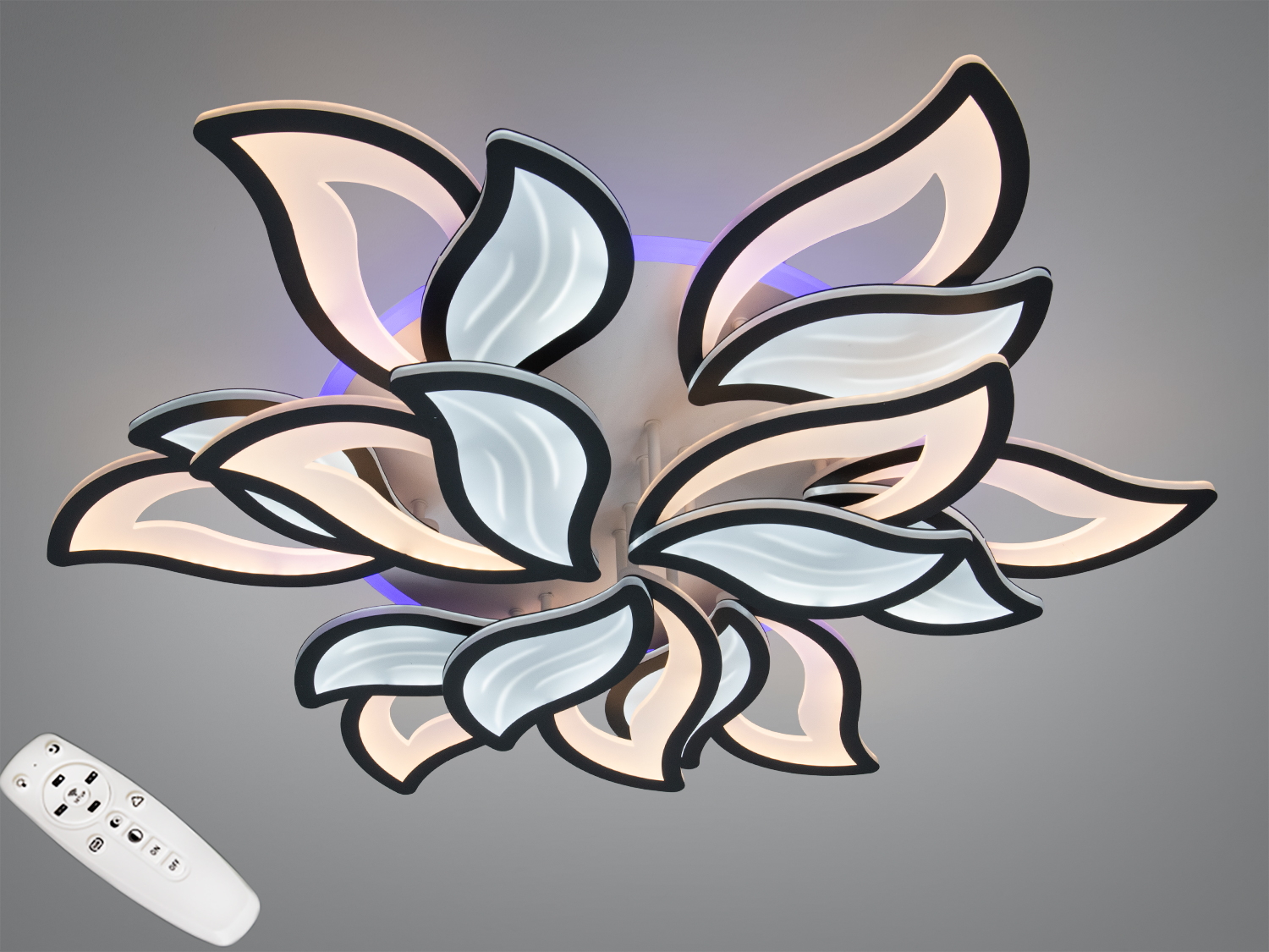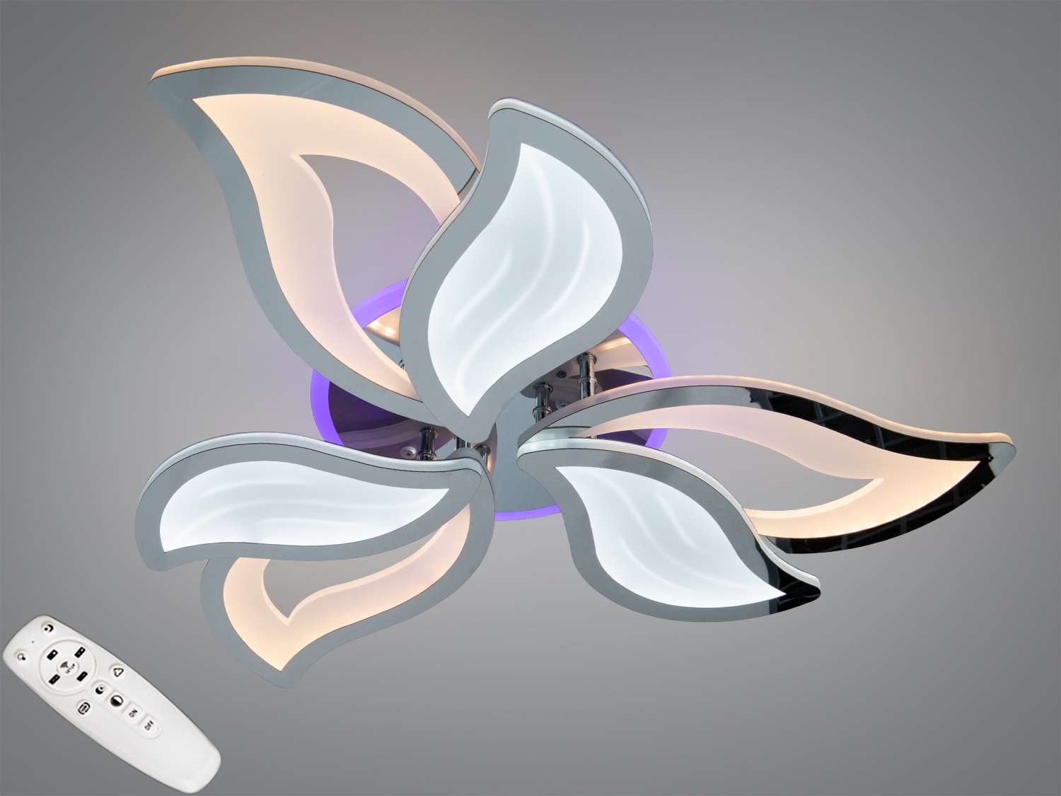 Стельова LED люстра квітка хром 225Вт пульт 40м²
