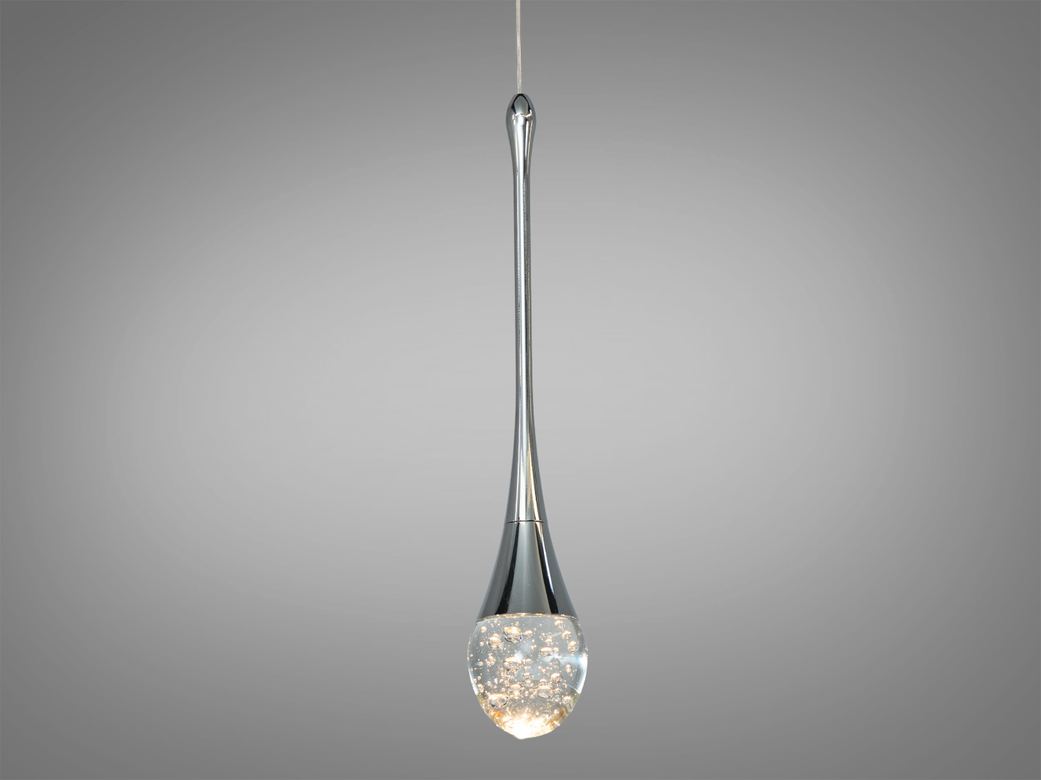 За своїми характеристиками цей підвіс відноситься до категорій одинарних LED-підвісів і часто поєднується з іншими джерелами світла в кімнаті: трековими системами, настінними бра чи стельовими панелями. Акцентний потік 220 лм з ефектом бульбашок може створити потрібний настрій і допомогти з зонуванням без зайвих деталей.