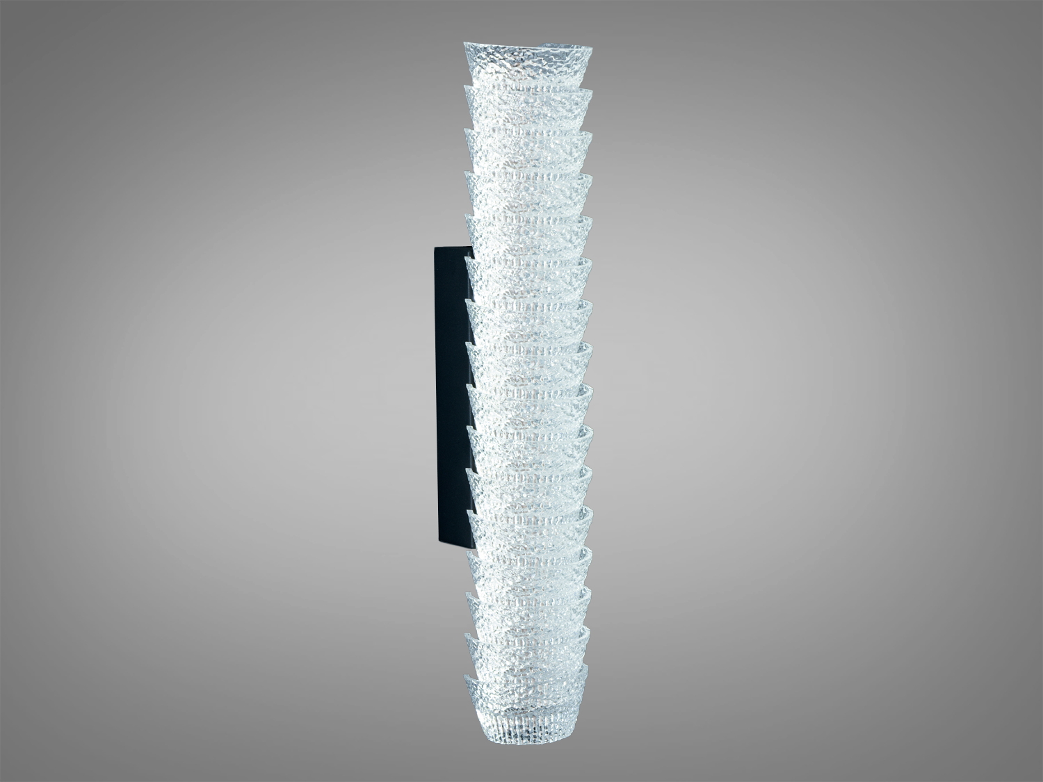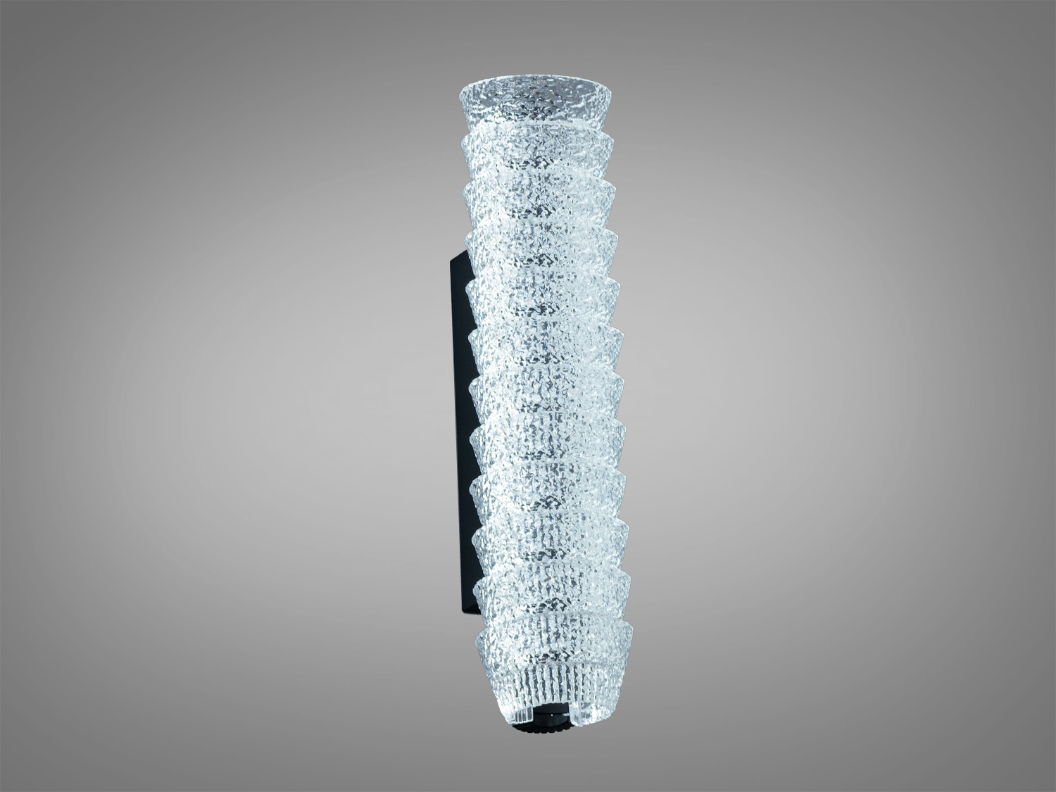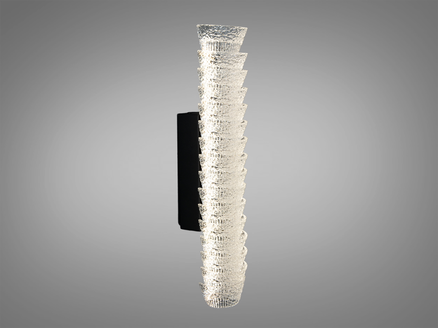 Матеріали та вигляд: міцний металевий корпус у чорному кольорі й прозорий акриловий розсіювач з хвилястим рельєфом. Така фактура надає світлові додаткової виразності і водночас зберігає чистоту ліній. Поверхня легко очищується сухою або злегка зволоженою м’якою серветкою без абразивів.