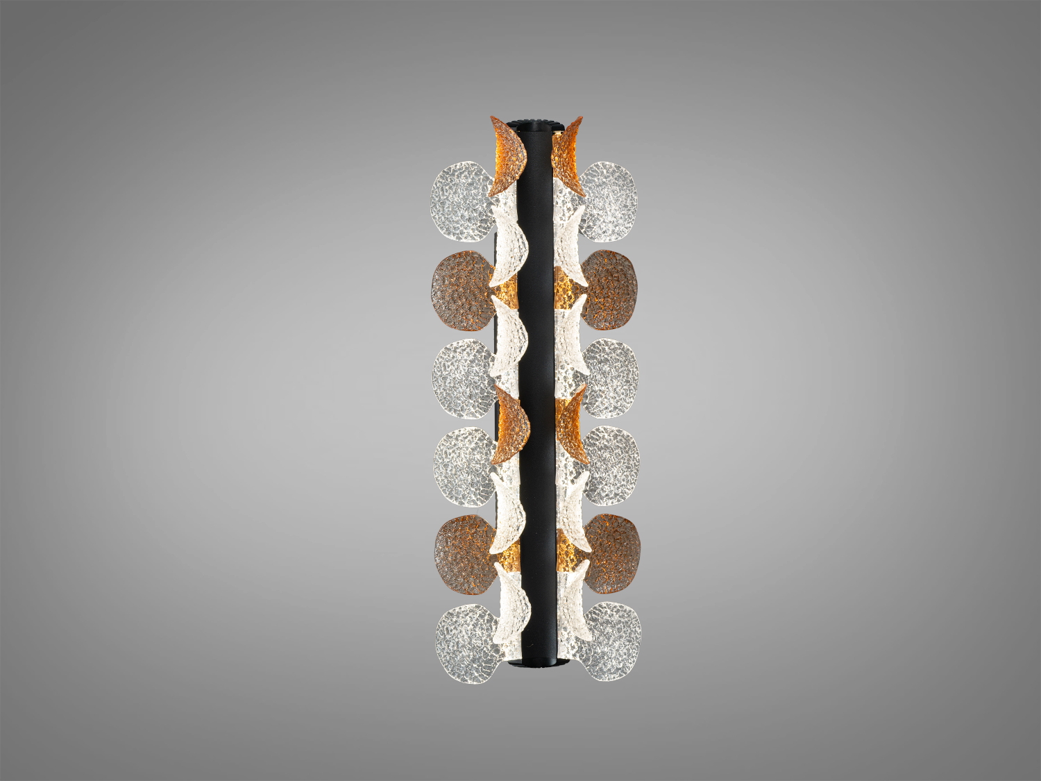 Матеріали та вигляд: міцний металевий корпус у чорному кольорі й прозорий акриловий розсіювач з хвилястим рельєфом. Така фактура надає світлові додаткової виразності і водночас зберігає чистоту ліній. Поверхня легко очищується сухою або злегка зволоженою м’якою серветкою без абразивів.