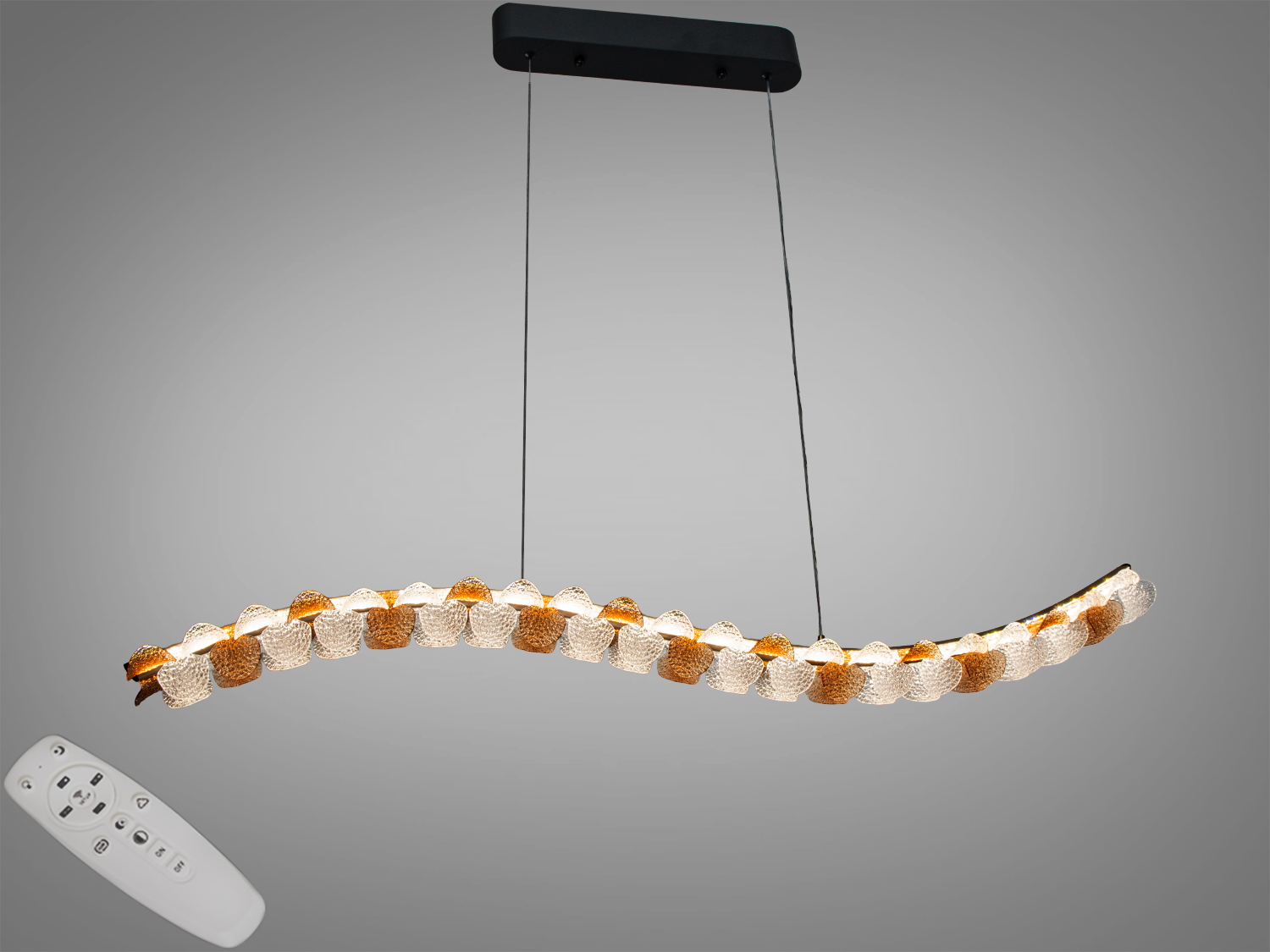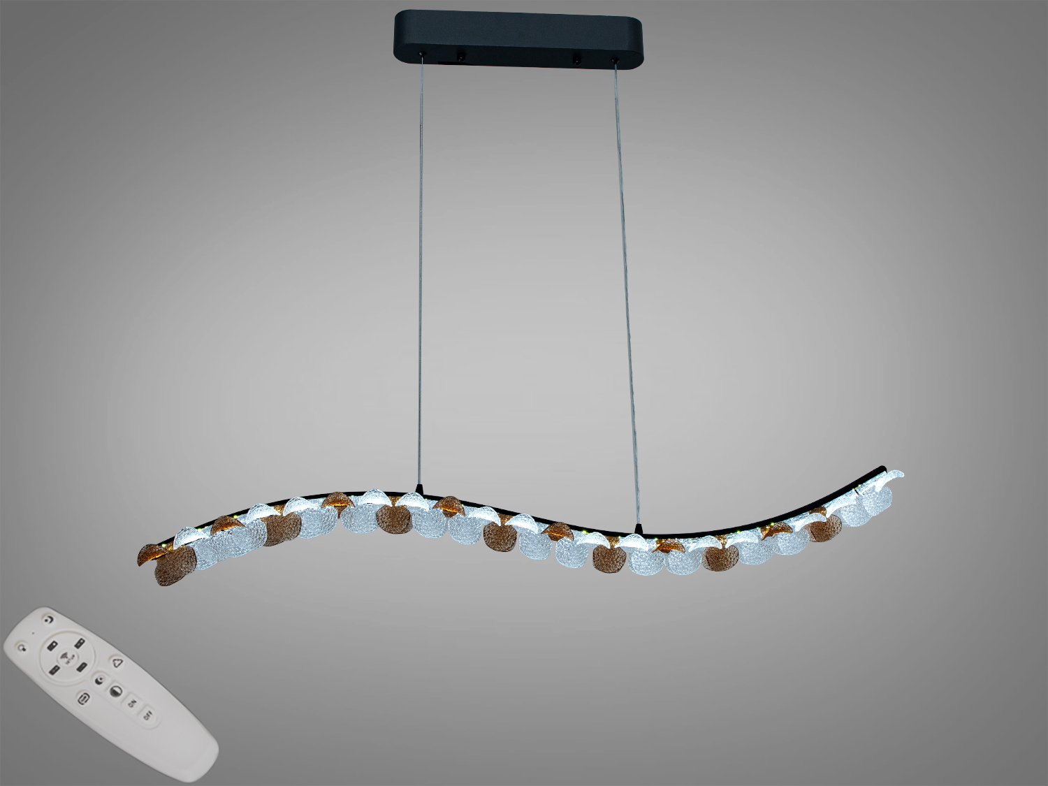 - Витягнута хвиляста форма підвісу виглядає легко та лаконічно, органічно вписуючись у мінімалістичні та сучасні простори.