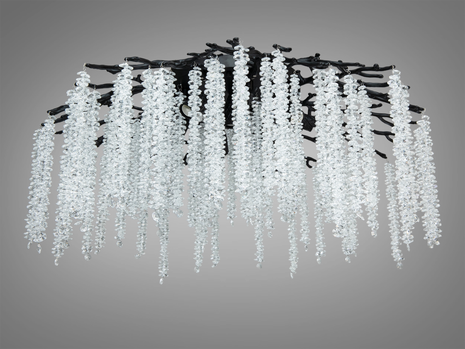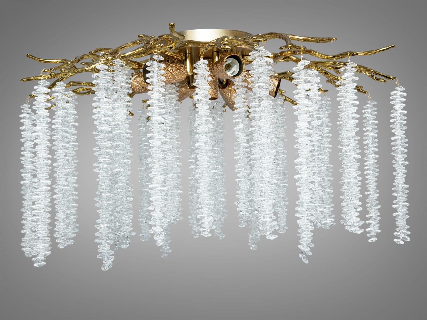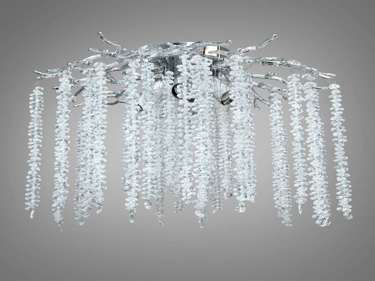 - Виразний «гіллястий» силует і кришталеві підвіски з ефектом «водоспаду».