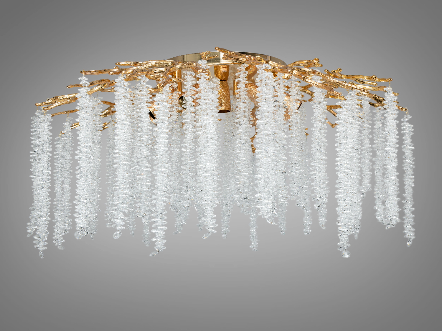 - Виразний «гіллястий» силует і кришталеві підвіски з ефектом «водоспаду».