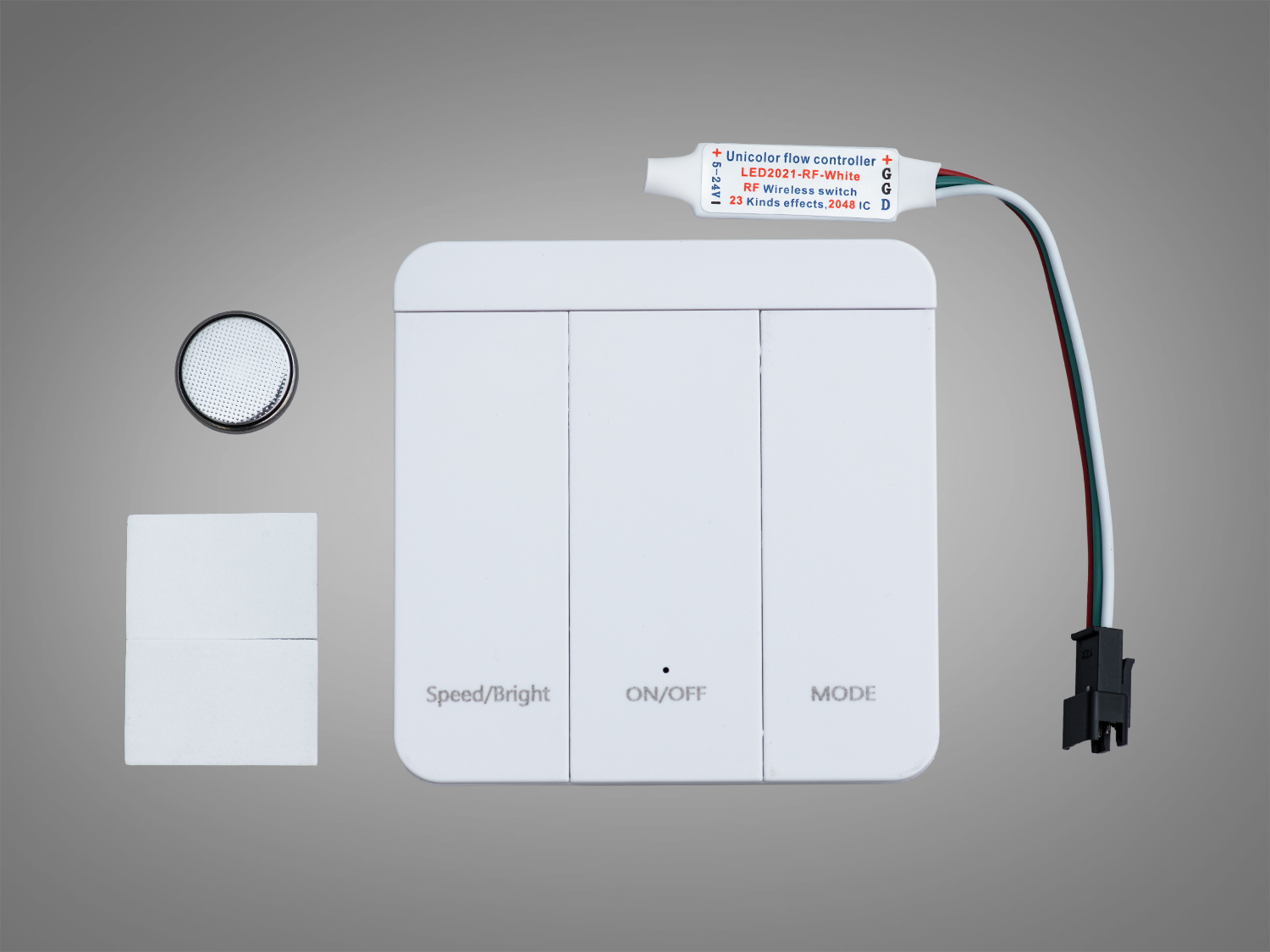 Цей RF контролер для SPI світлодіодної стрічки часто використовується для першочергового налаштування режимів або зміни ефектів світла. Три кнопки забезпечують повний контроль: ввімкнення/вимкнення, перемикання ефектів і регулювання яскравості або швидкості анімації. Ви легко знайдете свій ідеальний сценарій освітлення — від спокійного вечора до динамічної вечірки.