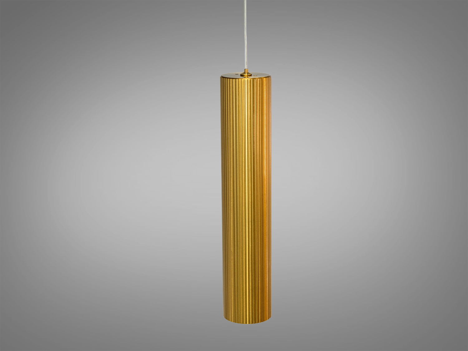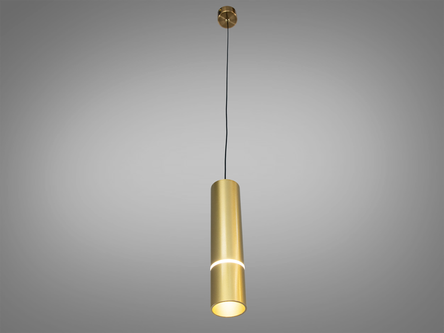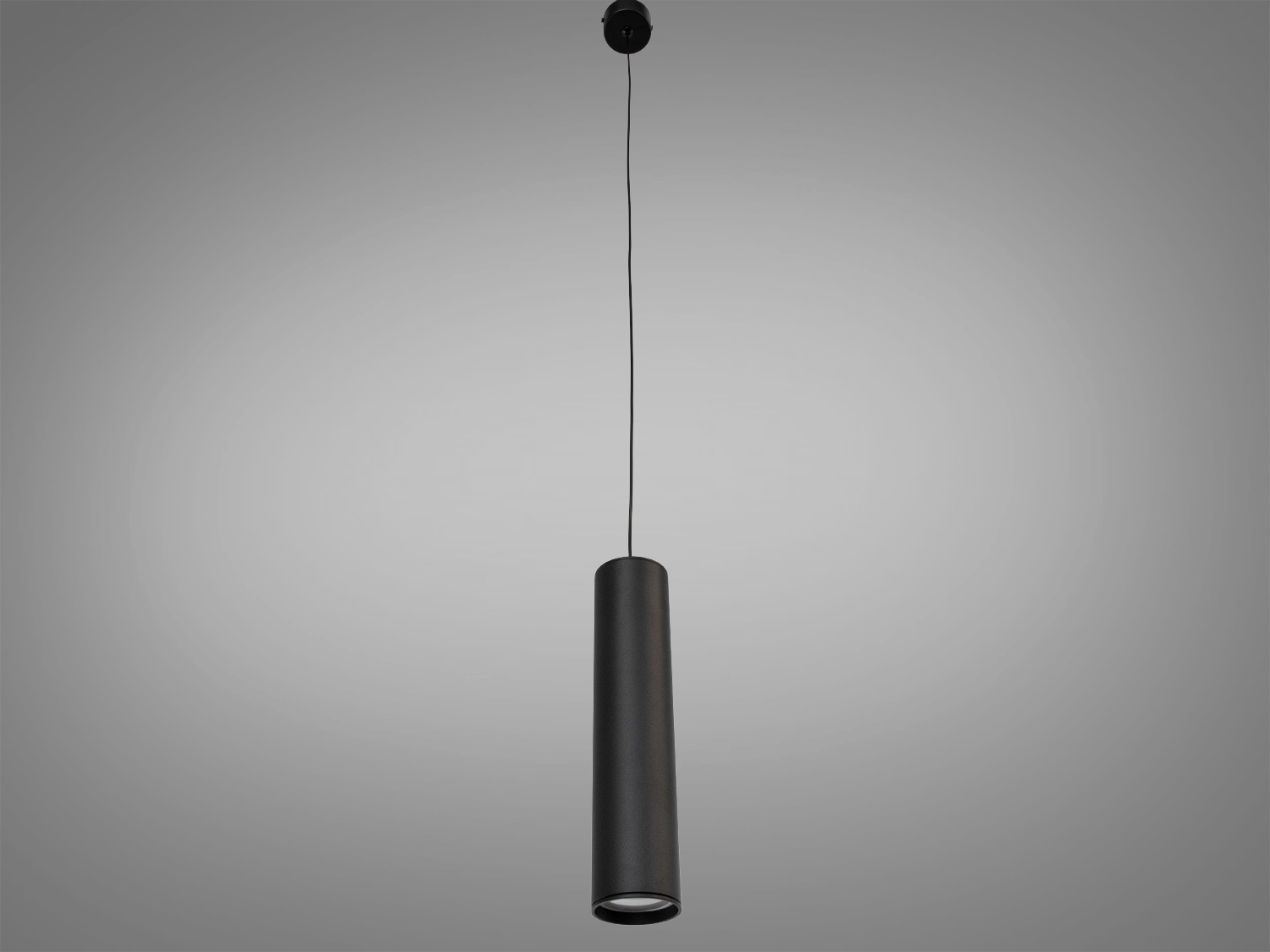 Корпус має лаконічну циліндричну форму з чорного металу. Така геометрія сприяє спрямованому світловому потоку, а матове чорне покриття виглядає стримано та добре поєднується з різними фактурами — деревом, бетоном, каменем. Акуратний підвіс на тонкому шнурі підкреслює вертикаль і дозволяє компонувати кілька однакових світильників у лінію або групою.