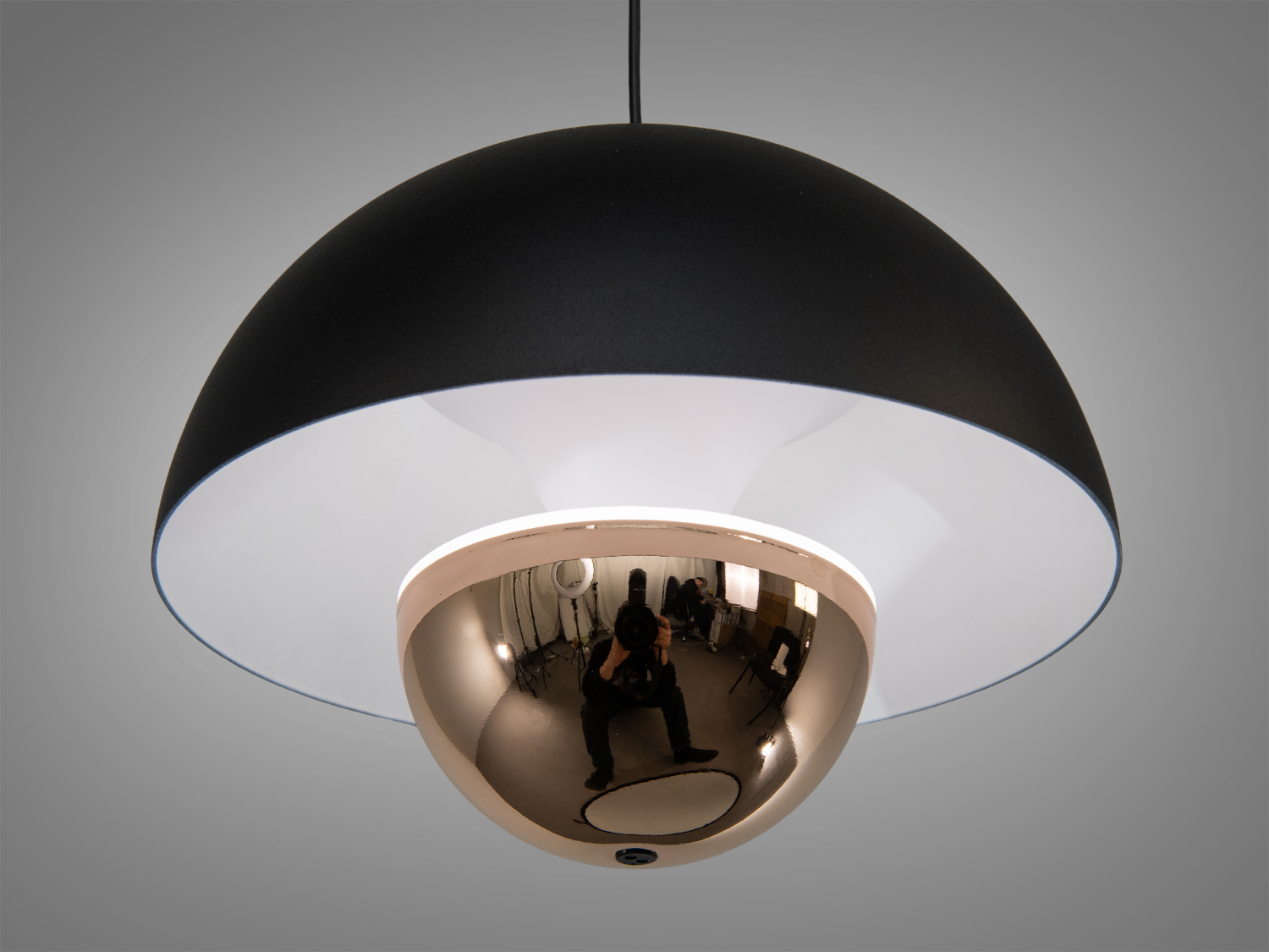 Корпус виконано з металу із зносостійким покриттям, що розраховане на щоденну експлуатацію. Металевий плафон допомагає спрямовувати потік та зменшувати засвіт стель. Чорне покриття візуально поєднується з деревом, бетоном, світлими й темними шпалерами, а золота деталь додає м’якого тепла у світловому образі.
