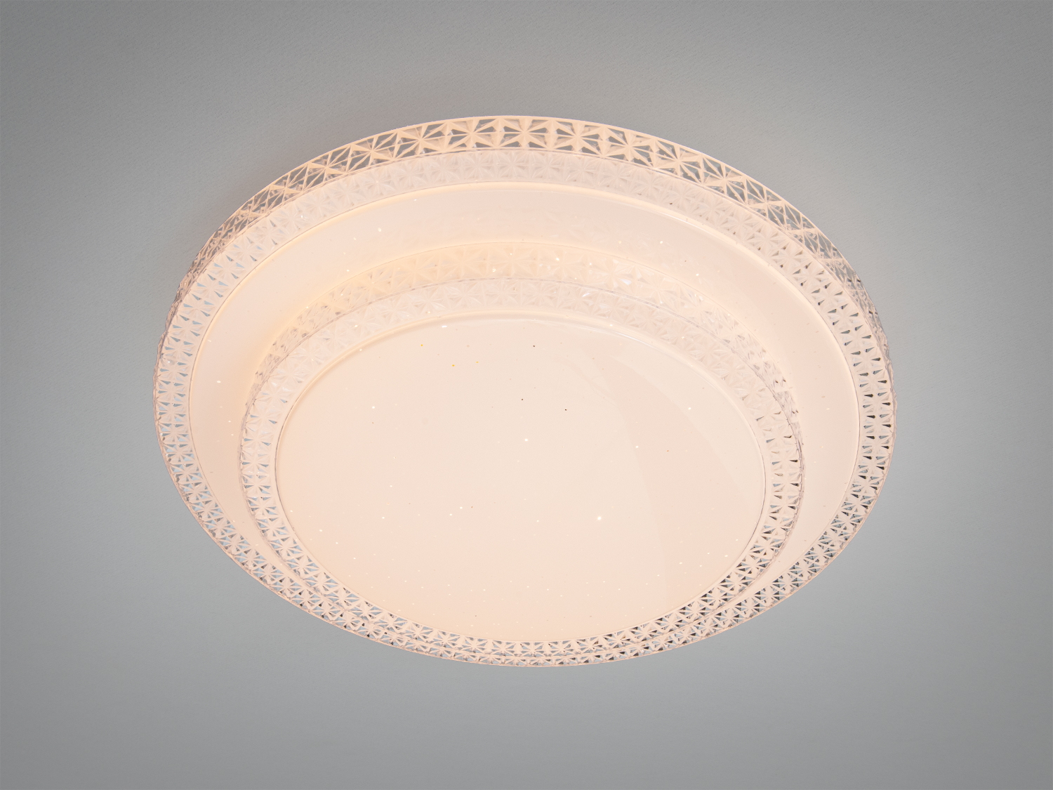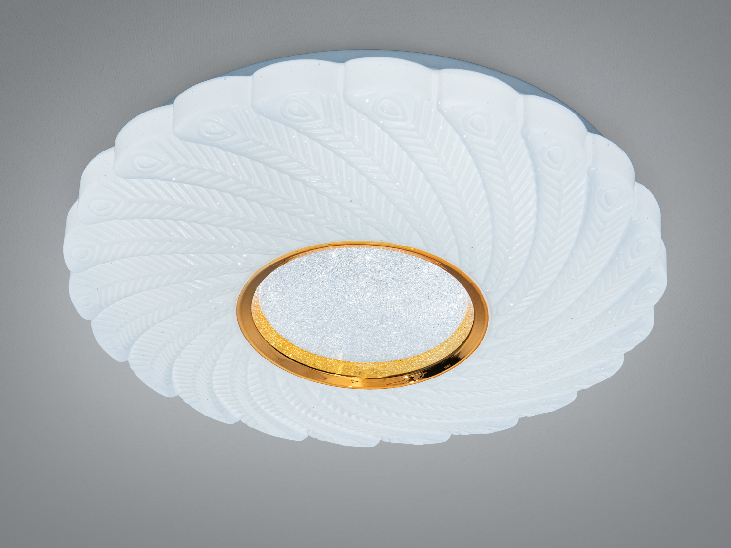 Вбудовані світлодіоди сумарною потужністю 34 Вт забезпечують приємне загальне освітлення для приміщень площею до 6 м² (передпокій, невеликий кабінет або компактна спальня). Світло розподіляється по колу, тож освітлення залишається стабільним у центрі і по краях. Модель працює від стандартної мережі 220–240 В, не має пульта та передбачає керування настінним вимикачем.