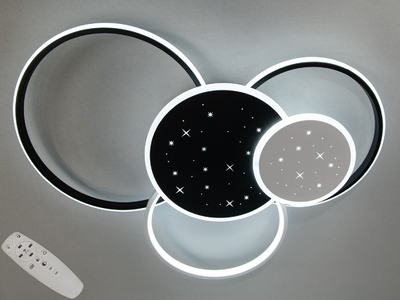 Сучасна пристельова світлодіодна люстра з пультом, 100Вт, білий+чорний