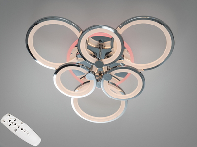 Стельова люстра з пультом, диммером і LED підсвічуванням, 110W, хром