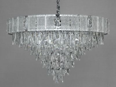 Підвісна люстра Серія Глициния хром 15 ламп E14 витягнута кришталева форма 607-L1500CH