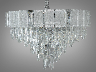 Кришталева люстра овальної форми для зали, 8 ламп, хром