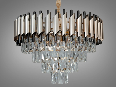 Контрастна підвісна кришталева люстра в вітальню, 9 ламп, хром+чорний