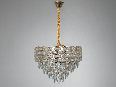 Люстра підвісна кришталева 327-600GD золото 11 ламп E14 конічна форма