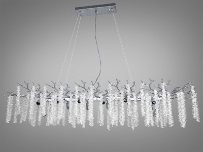 Підвісна люстра Серія Глициния хром 15 ламп E14 витягнута кришталева форма 607-L1500CH