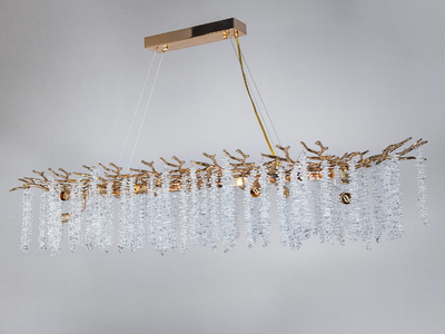 Підвісна кришталева люстра Diasha серія Глициния золото витягнута форма 10 ламп