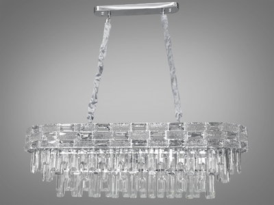 Унікальна підвісна кришталева люстра витягнутої форми, 14 ламп, хром