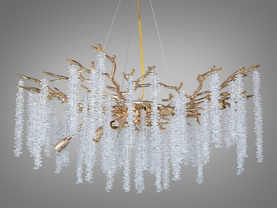 Дизайнерська підвісна кришталева люстра "Гліцинія", 6 ламп, золото