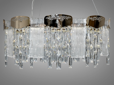 Люстра кришталева серія 1013 білий хром овальна на 16 ламп підвісна