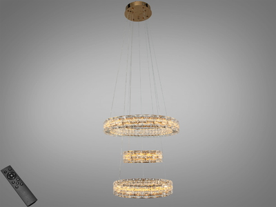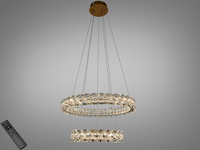 Підвісна люстра Diasha золото 54Вт пульт 2 кільця