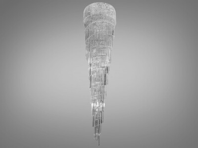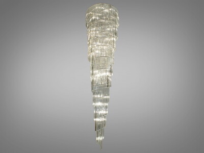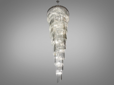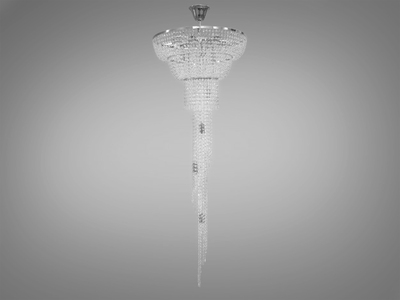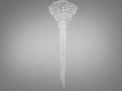 Велика каскадна кришталева люстра в лобі готелю, 49 ламп, хром