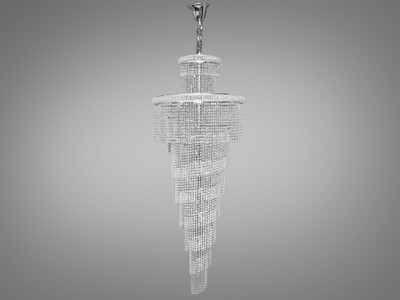 Граційна каскадна кришталева люстра в великий зал, 33 лампи, хром
