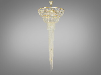 Елітна підвісна кришталева люстра на 45 ламп каскадної форми, золото