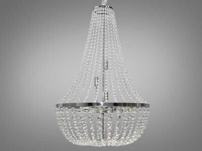 Неперевершена підвісна кришталева люстра в зал, 9 ламп, хром
