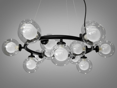 Ексклюзивна люстра підвіс в стилі Loft - "Бульбашки", 20 ламп, чорна