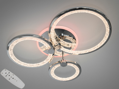 LED люстра з пультом, диммером і кольоровою підсвіткою, 70W, хром