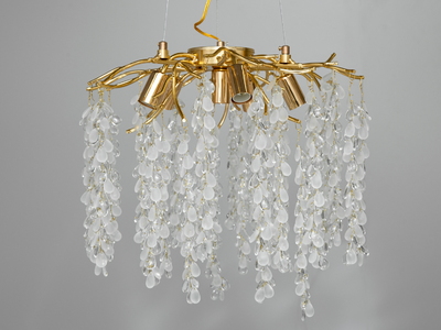Дизайнерська підвісна кришталева люстра "Гліцинія", 6 ламп, золото