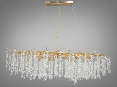 Сучасна кришталева люстра "Гліцинія" витягнутої форми, 12 ламп, золото