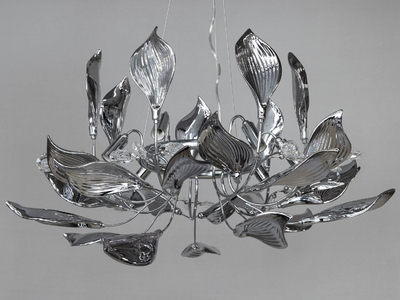 Дизайнерська стельова люстра "Світлячок", 42 лампи, хром сатин