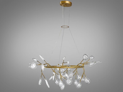 Унікальна підвісна люстра "Світлячок", 45 ламп, золото сатин