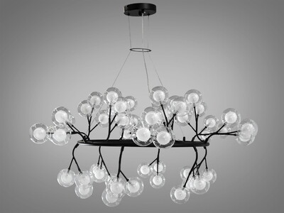 Стильна люстра підвіс в зал "Світлячок", 54 лампи, чорна