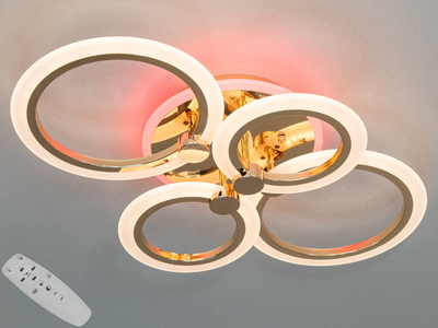 LED люстра з пультом, диммером і кольоровою підсвіткою, 60W, золото