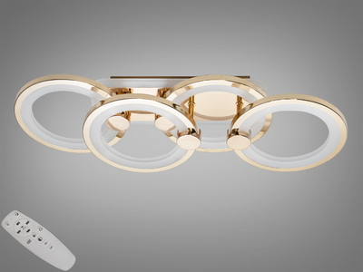 Стельова лед люстра з пультом, диммером, підсвічуванням, 140W, золото