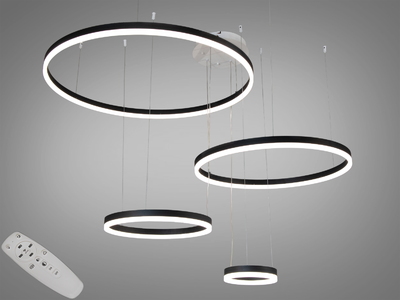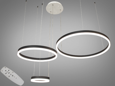 Світлодіодна підвісна люстра три кільця з пультом, димером, 90W, чорна